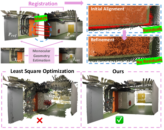 Dongki Jung, Jaehoon Choi, Yonghan Lee, Sungmin Eum, Heesung Kwon, and Dinesh Manocha [arXiv] We propose MoRe, a training-free Monocular Geometry Refinement method designed to improve cross-view consistency and achieve scale alignment. |